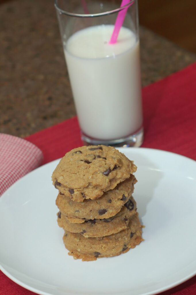 I’m was in the mood for cookies. I am always on the look out for new chocolate chip cookie recipes. I found one on healthyfoodforliving.com for Chocolate Chip Oatmeal cookies. I love chocolate chips and I love oatmeal, so I gave it a try. I just adjusted the recipe one tiny but. I substituted 3/4 Biscoff Spread for the 3/4 cup light brown sugar it asked for.